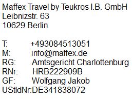 Die TeukrosI.B. GmbH erklärt ausdrücklich, dass sie keinerlei Einfluss auf die Gestaltung und die Inhalte der gelinkten Seite hat. Deshalb distanzieren wir uns hiermit ausdrücklich von allen Inhalten aller gelinkten Seiten Dritter auf www.maffextravel.com und machen uns diese Inhalte nicht zu Eigen. Diese Erklärung gilt für alle angezeigten Links und für alle Inhalte der Seiten, zu denen Links führen.
