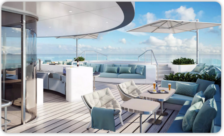Ein Beispiel ist die Superkreuzfahrtjacht Scenic Eclipse – mit eigenem Helicopter und U-Boot an Bord.